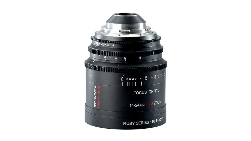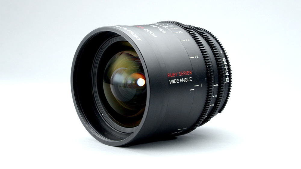 El zoom angular Ruby se basa en el cristal de Nikon, pero la carcasa y la mecánica se han rediseñado por completo. La lente enfoca en la dirección estándar en la que enfocan todas las opticas PL, con muchas marcas de enfoque claras en un cilindro grande. Toda la lente es bastante compacta: solo mide 138 mm de largo y apenas tres libras. Los anillos de enfoque, zoom e iris están todos adaptados a los estándares de cine, y el diámetro frontal también es un estándar de cine de 110 mm. La lente también aceptará un filtro de rosca de 102 mm en la parte delantera.
